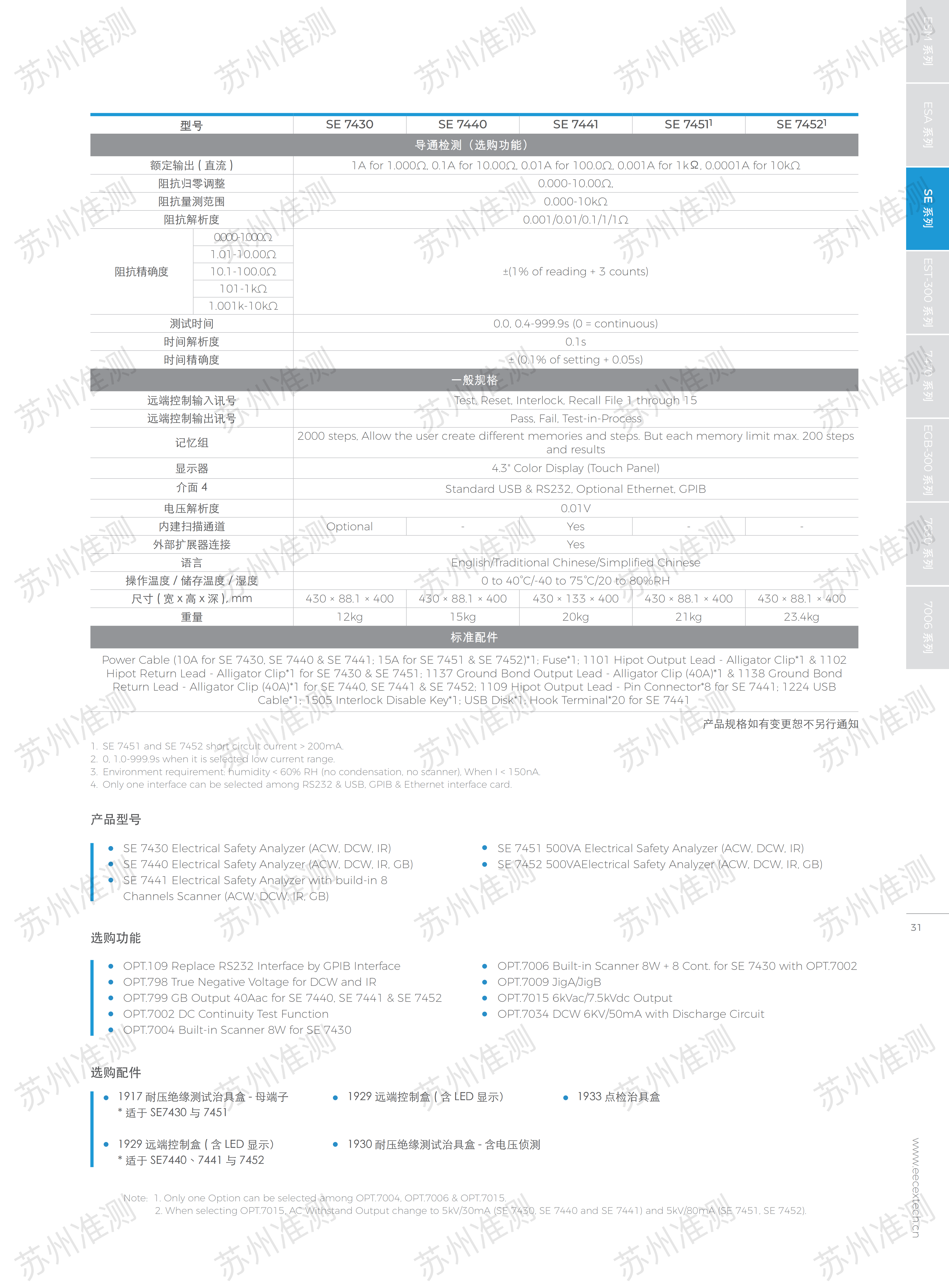 新一代的 SE 系列四合一安規(guī)測試儀效能再升級,結(jié)合了業(yè)界指標(biāo)性的 ARC 電弧偵測功能,高精度四線測量及